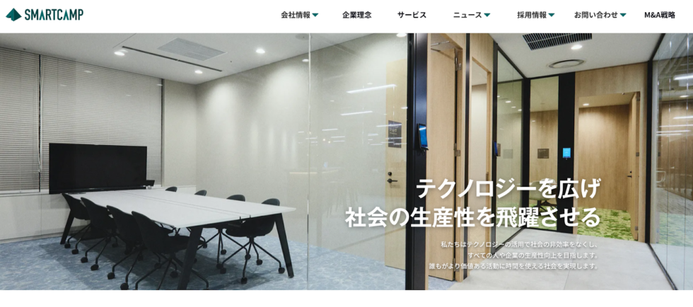 スマートキャンプは、SaaS領域に特化して企業の生産性向上を支援するサービスを展開する企業です。テクノロジー活用を推進し、社会全体に効率的な働き方を広げることをミッションに掲げています。